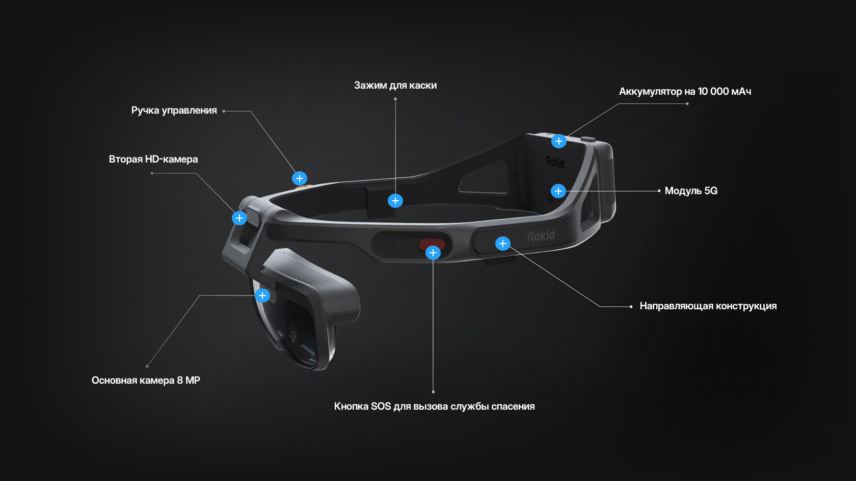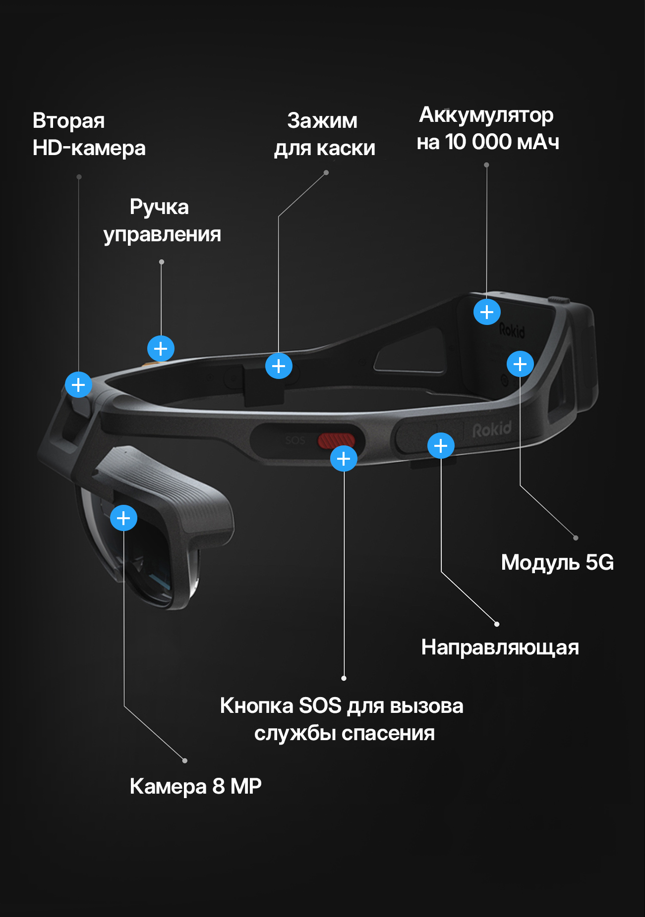 Технология отображения бинокулярного оптического волновода, угол обзора 40°, коэффициент контрастности 400:1, максимальная яркость 1600 нит.